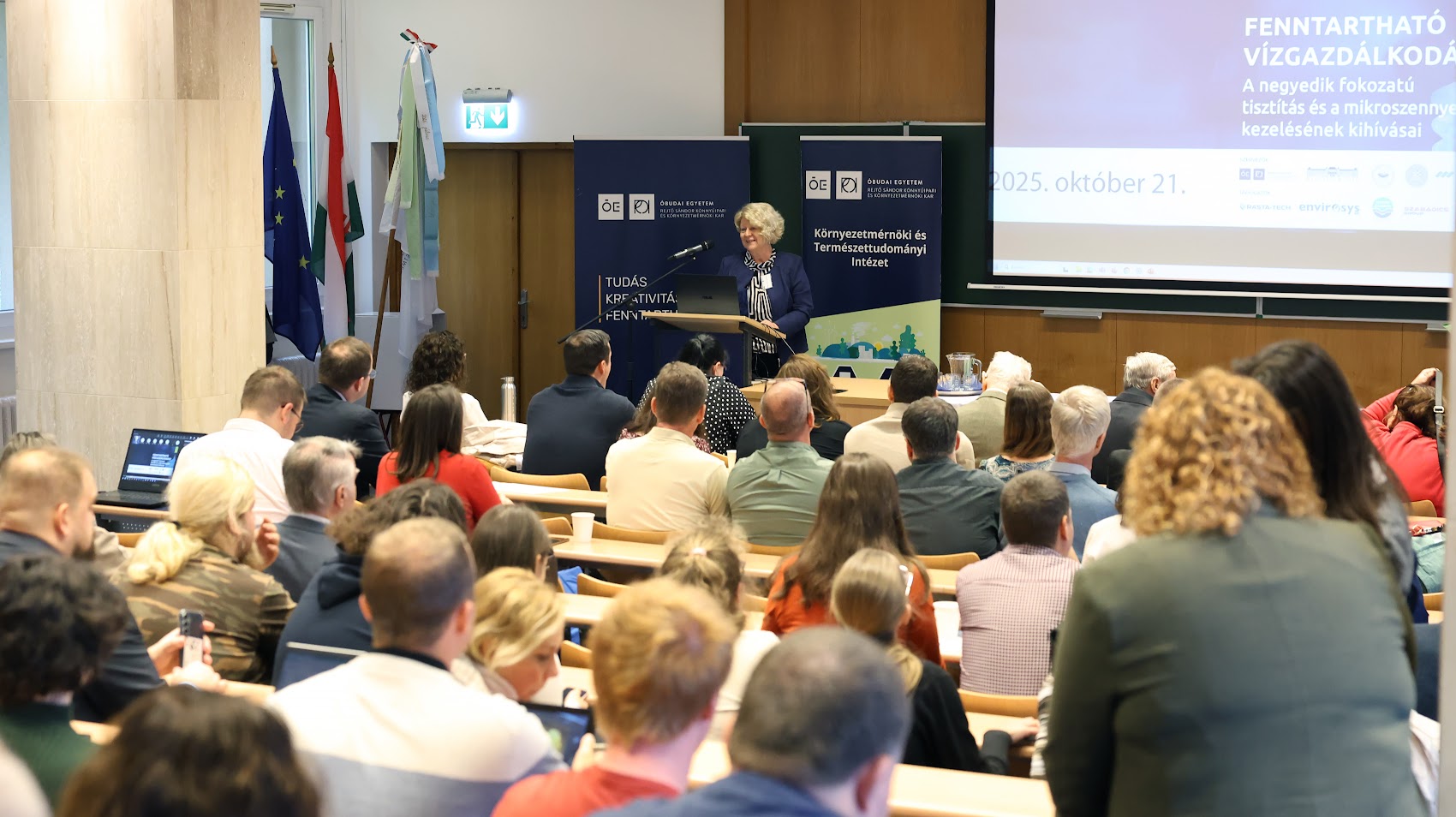 Budapest, 2025. október 21. – Kiemelkedő szakmai érdeklődés mellett került megrendezésre a „Fenntartható vízgazdálkodás? -A negyedik fokozatú tisztítás és a mikroszennyezők kezelésének kihívásai” című konferencia az Óbudai Egyetem Rejtő Sándor Könnyűipari és Környezetmérnöki Karon.