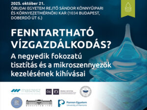 Várjuk Hallgatóinkat és Kollégáinkat a 2025. október 21.-én Karunkon megrendezésre kerülő FENNTARTHATÓ VÍZGAZDÁLKODÁS? A negyedik fokozatú tisztítás és a mikroszennyezők ...